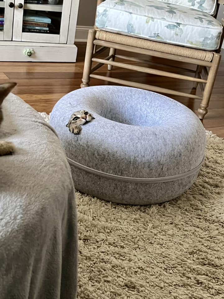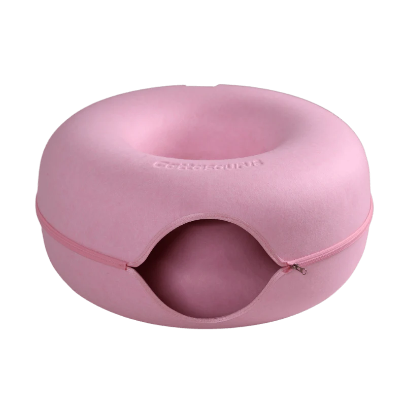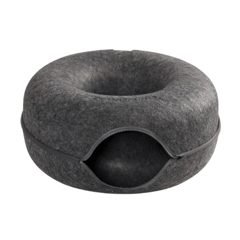 Wykonana jest ze sprasowanego, elastycznego materiału, który został uformowany w kształt „oponki”. Tworzy super przytulne legowisko, w którym koty mogą się schować, zdrzemnąć albo pobawić w zapasy ze swoimi kocimi przyjaciółmi.