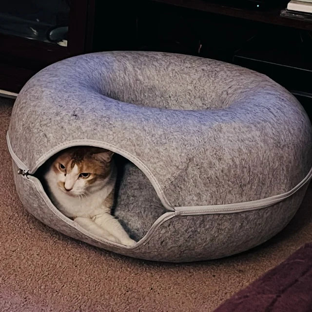 Nasza jaskinia z filcu odpornego na zadrapania wytrzymuje nawet najbardziej energiczne zabawy z najbardziej wymagającymi kocimi towarzyszami.